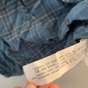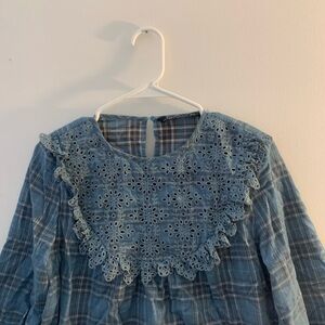 Long sleeve top with a round neckline. Featuring matching cutwork embroidery on the front and a buttoned opening in the back.