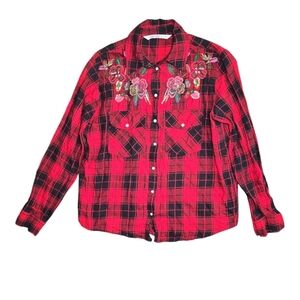 Zara Checked Button Down Shirt with Bejeweled Appliqué Size M
