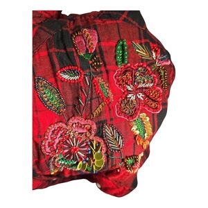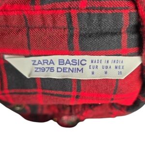 This Zara Checked Shirt with Bejeweled Appliqué top features a striking red and black color palette, perfect for making a bold statement. The button-down style is enhanced with a notched collar, offering a touch of sophistication. Ideal for casual outings, this shirt combines comfort with a classic design.