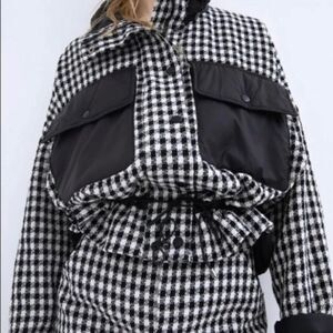 Zara Checkered Tweed Bomber Jacket Oversized Relaxed Boxy Size Medium Streetwear
