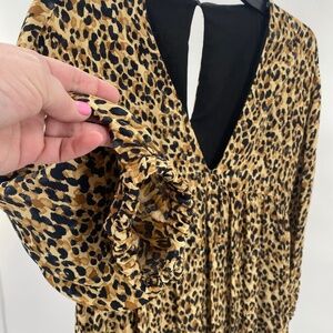 Dress is lined with a low v neckline. Key hole button up in the back.