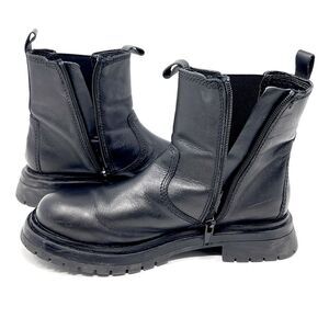Zara Chelsea Black Leather Inside Zip Platform Lug Sole Ankle Boots EU 36 (US 6)