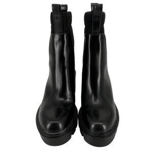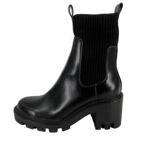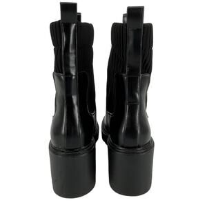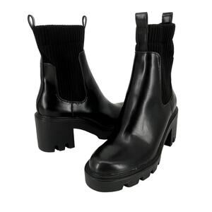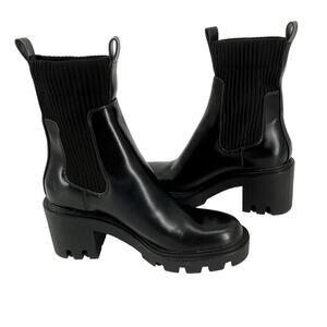 Zara Chelsea Boots Lug Sole Ribbed Sock Mid Calf Black Faux Leather 38