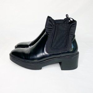 Zara Chelsea Lug Sole Chunky Heel Platform Ankle Boot Black Size 39 US 8