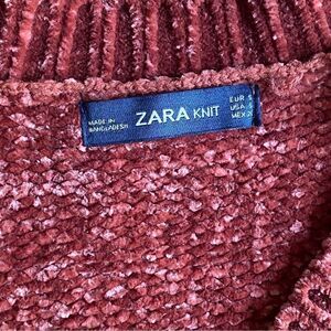 Zara Knit Chenille Oversized V-neck Pullover Sweater in Rust Spiced Cinnamon. Loose fit slouchy boxy baggy draped silhouette.
