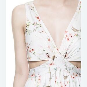 Zara Cherry Blossom Floral Bird Print Open Side Cut Out Maxi Dress Small