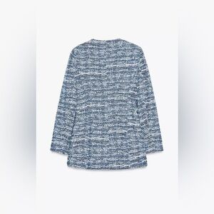 Stylish blue tweed coat with button details. Perfect for a sophisticated look.