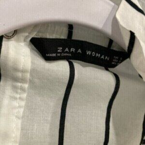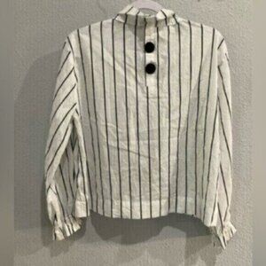 Zara Chic Contemporary Mock Neck Feminine Striped Office Long Sleeve Top