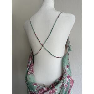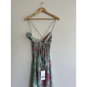 Dress to impress at your next event with this stunning Zara Chiffon Floral Maxi Dress. This beautiful multicolor dress features a floral pattern that is perfect for any summer or spring wedding. The strappy sleeve design and ruffle accents add a touch of elegance to this lightweight and comfortable dress.