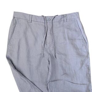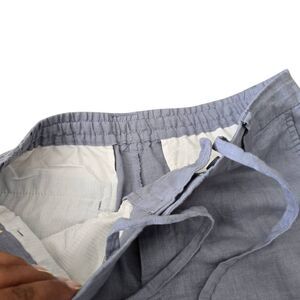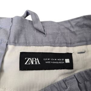 Zara, Modern, Chino Pants, Linen Blend, Drawstring, Pull-On, Straight Leg, Workout, Fall, Summer, Spring, Winter. Zara Chino Pants Women's Medium Blue Linen Blend Drawstring Straight Pockets.