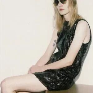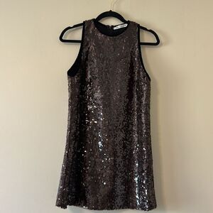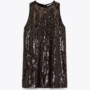 Zara Chocolate Brown Limited Edition Sequin Sleeveless Small Mini Dress Bodycon