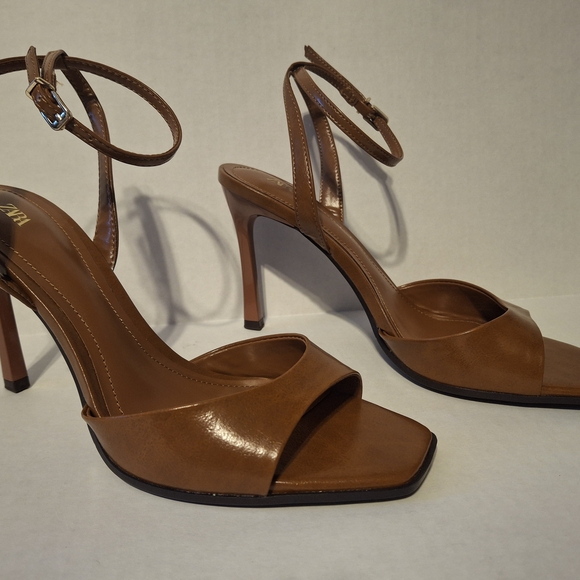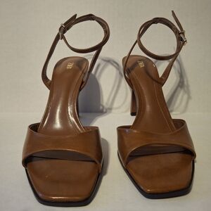 Heeled sandals with ankle straps. No original shoe box. Never worn.