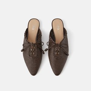 Zara Chocolate Woven Mules 38, 7.5, 8