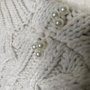 Zara Chunky Cable Knit Pearl Embellished Sweater Womens L Ivory