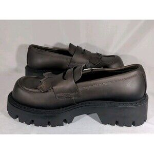 Zara Chunky Fringe Penny Loafer Mens 8 Dark Brown Lug Platform Sole 2625/520/700