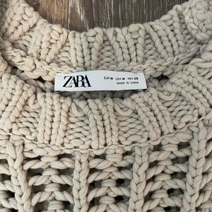 Zara Thick Short Sleeve knit sweater with side ties in Stone Sz Medium