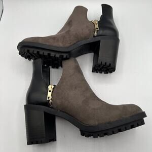 Zara Trafaluc Womens Size 38 US 7.5 Leather Suede Lug Ankle Boots Black Brown 3" Chunky Heel New Without Tags Chunky Edgy Fall Winter Grunge 90's