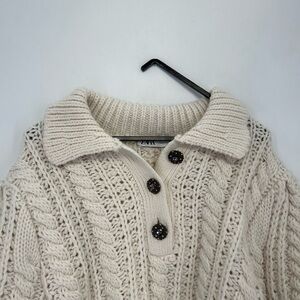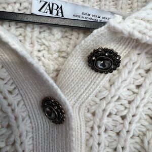 Zara Chunky Wool Blend Knit Collar Half Jeweled Large Button Cable-knit Sweater