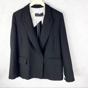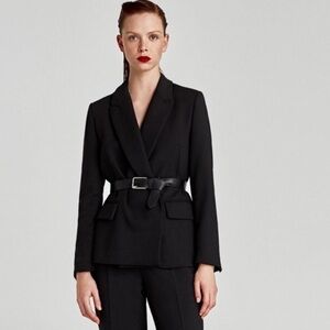 Zara Collection Classic Black Double Breasted Blazer. Long Sleeves. Tuxedo Style. Padded Shoulders. Folded Collar. No Pockets. Thicker Knit Material. Small Button Pocket on Inside Flap. Oversized Style. Flap Pockets. Cute & Comfy. NWT / New With Tags. Great Condition No Stains or Rips.