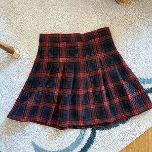 Zara Classic Tartan Plaid Pleated Mini Skirt - Red & Blue Check