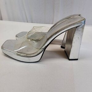 Zara Clear Platform Chucky Heels Women Size 9.5UD 40EU Metallic Sliver Retro