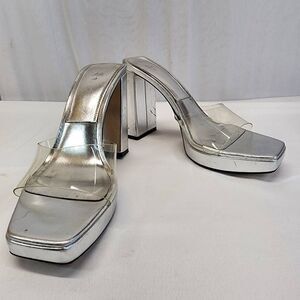 Zara Clear Platform Chucky Heels Women Size 9.5UD 40EU Metallic Sliver Retro