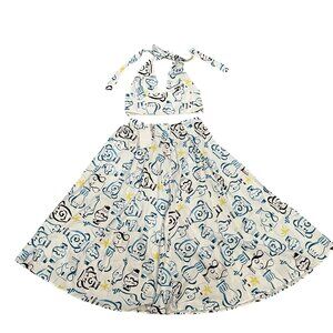 Zara CoOrd Set Printed Poplin Crop Top & Midi Skirt Set Abstract Cotton Medium