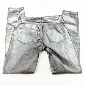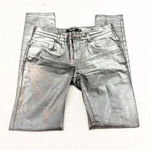 Zara Coated Denim Skinny Metallic Jeans Zip Fly Form Fitting Size 4/6