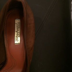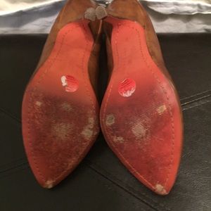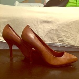 Zara Cognac leather pumps. The cognac color of these pumps has a really beautiful patina that gives the appearance soft worn leather without actually being broken in. Classic pumps. Great condition, only worn a handful of times. I hate to get rid of them, but a recurring ankle injury is keeping me in flats these days!