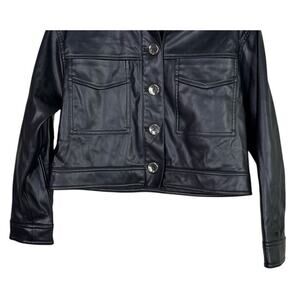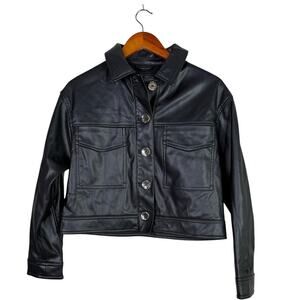 Zara Collar Cropped Faux Leather Moto Jacket Patch Pockets Buckle XS Black #3966