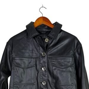 Zara Collar Cropped Faux Leather Moto Jacket Silver Zippers Pockets Buckle S Black