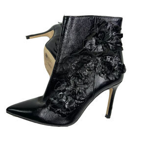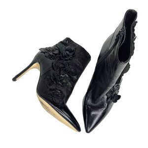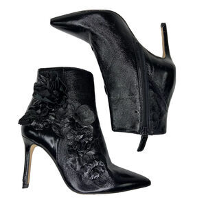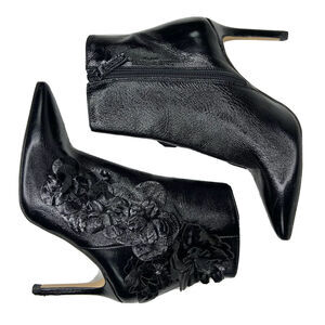 Zara Collection 3D Floral Ankle Boots EU 36 Black Leather Glam Preppy Date Night