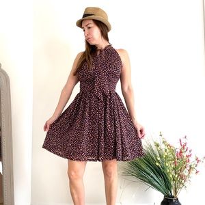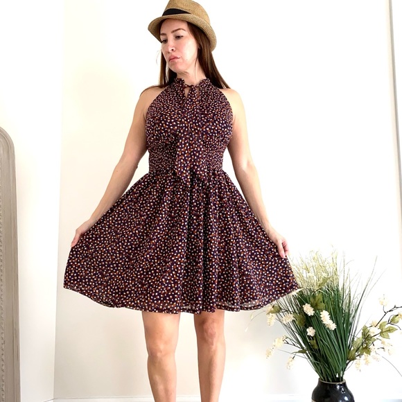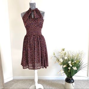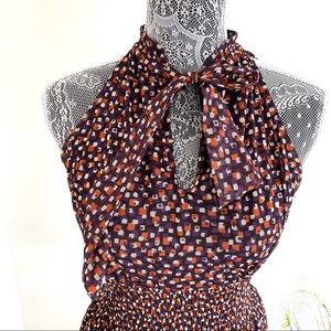 UNIQUE ZARA Printed Dress with Bow Tie Neck