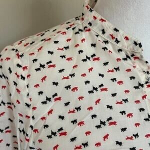 Zara Collection Blue and Red Dogs & Cats Playing Women’s Blouse Size Small