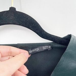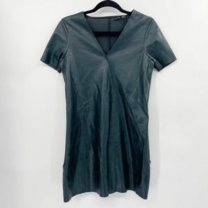 Zara Collection Faux Leather Shirt Dress Green Size S V-Neck Short Sleeve