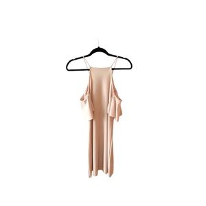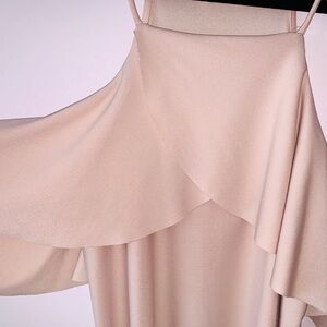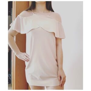 Zara Collection blush cold shoulder mini dress. In excellent condition! High neckline. Open cold shoulders. Short sleeves. Ruffle details across the top. Effortless shift style. Mini length. Unlined. Light pink color. Size small.