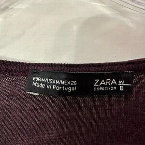 Zara Collection Sheer Striped Maroon Drop Shoulder Top Size Medium