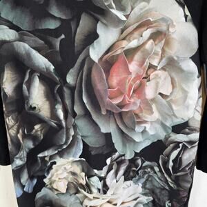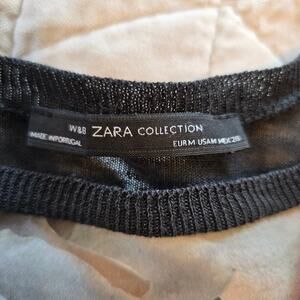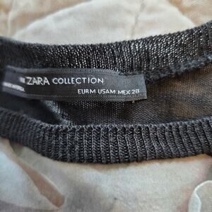 Zara Collection Top Women's M Black Knit Semi Sheer Roses Design Dark Romantic