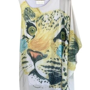 Zara Collection, Woman Basic T-Shirt, One Sleeve, Tiger Print, Asymmetrical Top. Sheer Tiger print over lay. One sleeveless and one open flowy sleeve. Very soft lining. Asymmetrical neckline and hemline. Size small. See photos for measurements to ensure fit. No care or fabric tags. Preowned condition.