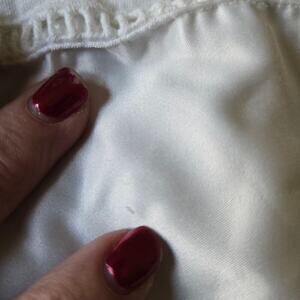 Beautiful sundress or long tank, few loose threads in the satin trim with a small mark, took a pic to show but they are very tiny thread ends and hard to show