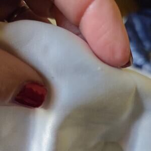 Beautiful sundress or long tank, few loose threads in the satin trim with a small mark, took a pic to show but they are very tiny thread ends and hard to show