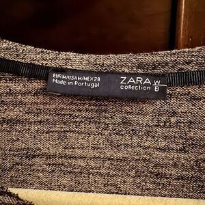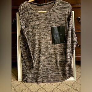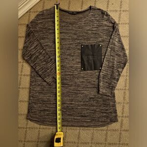 Zara Collection brown heathered long sleeved top with leather pocket NWOT M