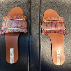 Zara Colorful Fringe Slide Sandals