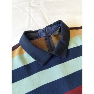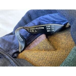 Zara Colorful Navy Striped & Collared Midi Dress With Pockets Womens Size XS