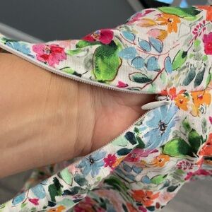 Pretty spring floral print shorts with ruffle hem and side zipper closure. Size 10