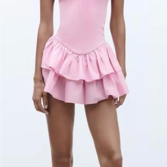 Zara Combination Pink Ruffle Mini Dress