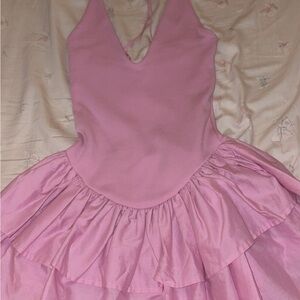 Zara the “Combination” pink Ruffle Mini Dress. So flattering and could fit up to a medium. So snatching and zero flaws