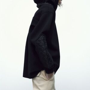 Zara Combination Quilted & Denim Black Hooded Sweatshirt | Size US S
