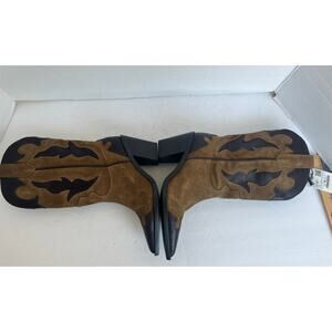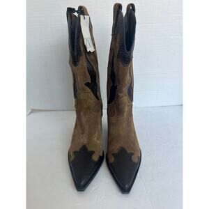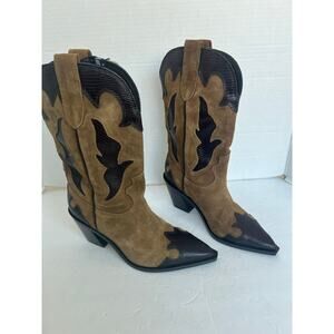 Zara Combined Split Suede Leather Cowgirl Pull On Pointed Toe Mid Calf Boot READ