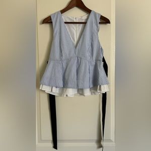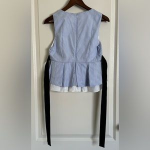 Zara top with tie in blue stripe and white contrast cotton poplin and black tie. Can be tied at the front or back.